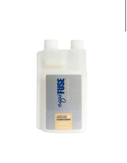 Rehydrinse™ 1-step coat protector and conditioner is jam packed with moisturizers and rich proteins. This unique hydrating complex fortifies and strengthens the horse's coat, while leaving the body satiny smooth and protected against dehydration.