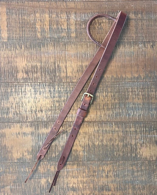 This one inch wide headstall is simple, but hight quality to last for many years. It a brass buckle, and tie ends.