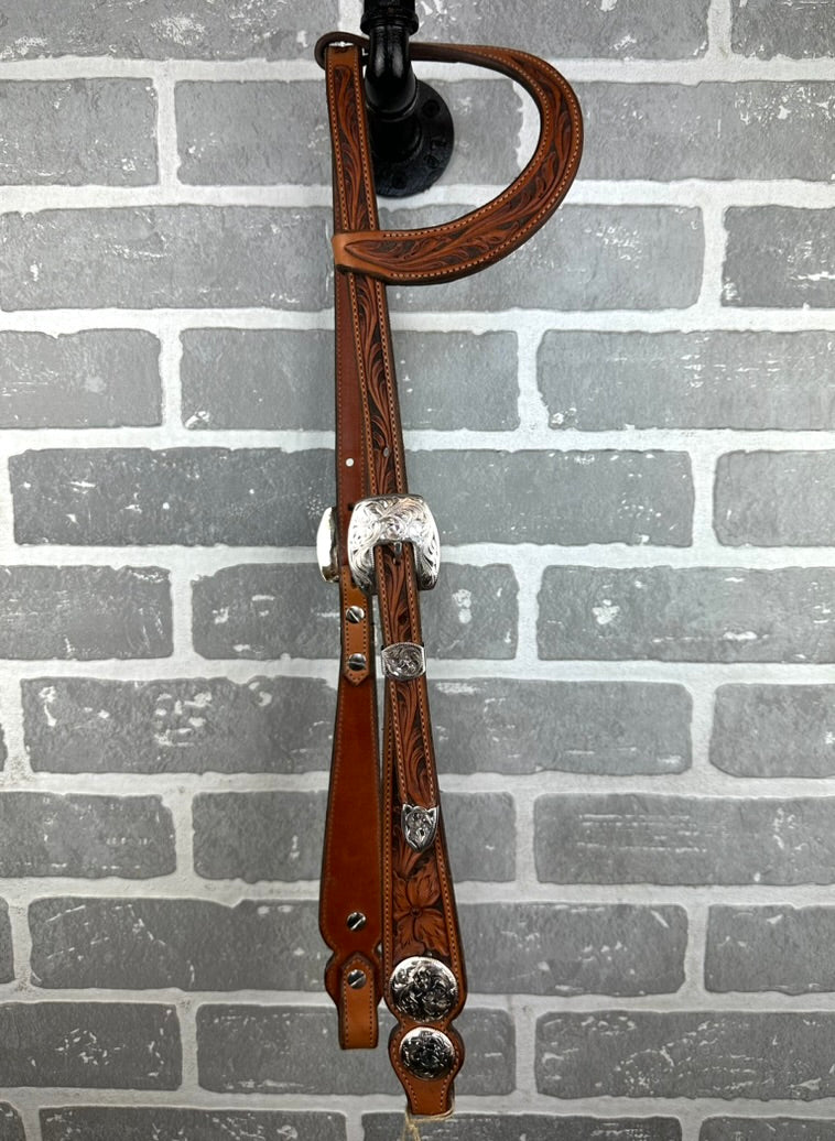 This gorgeous hand crafted TM Leather headstall is a just what you need to complete the look! From the beautiful silver, to the hand carved leather, to literally every detail. This headstall is made in the USA.