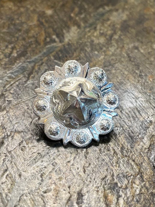This beautiful slide is from Hansen silver. Known for their beauty and quality. It measures 1 1/2" wide, and a beautiful accent for any wild rag. This slide is in an silver finish.