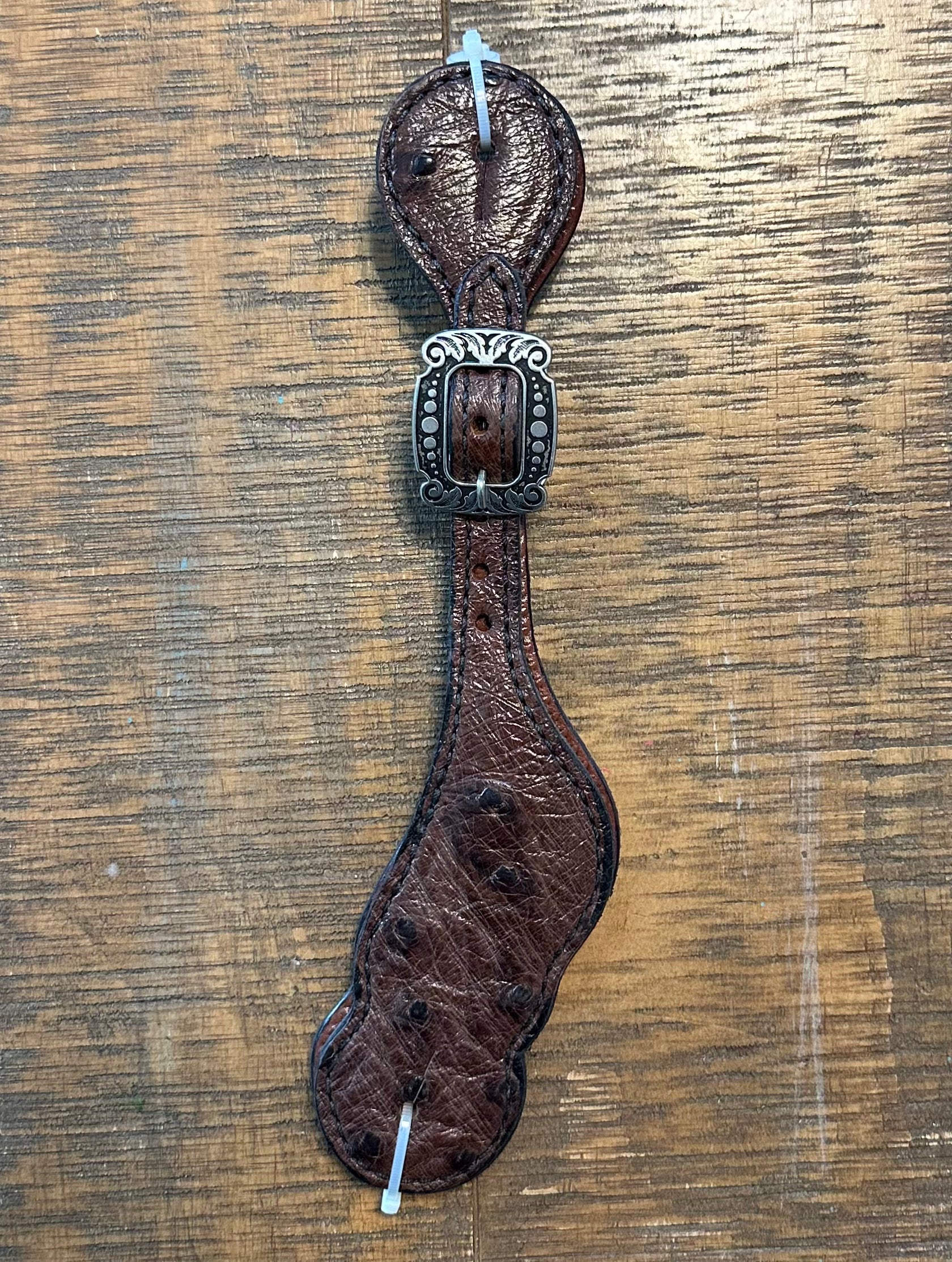 These beautiful Miguel Aguilar spur straps are made here in US by one of their talented artists! This pair is a brown exotic overlay with stainless buckles. Fits most sizes.