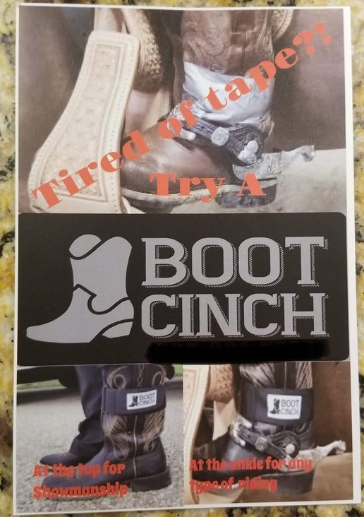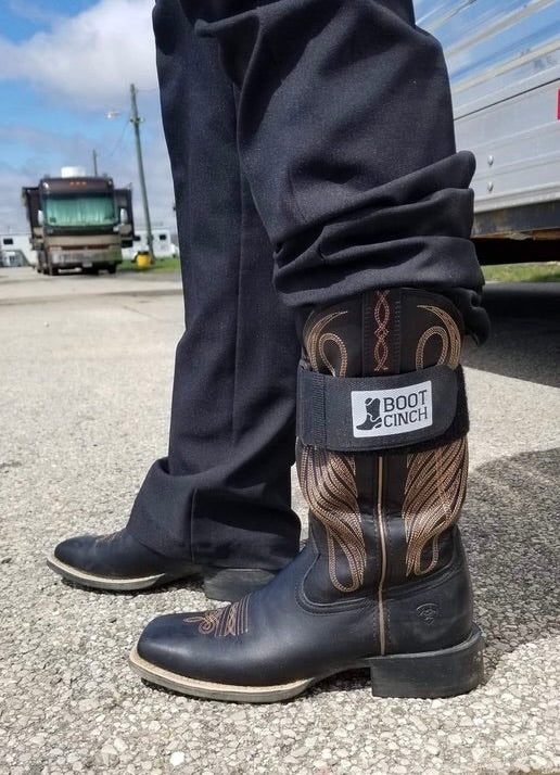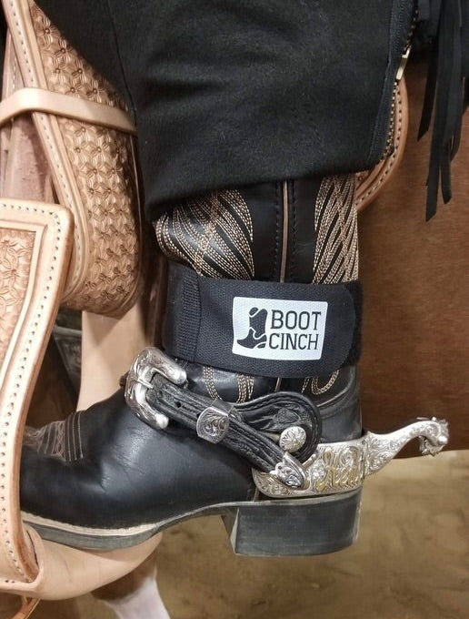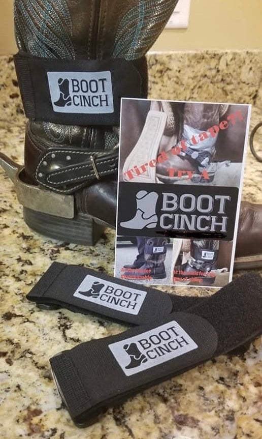 No more tape!! With the ‘cinch’ being 2” wide, it has the perfect amount of coverage to gather the extra space in your boot and put. It’s great for smoothing out the pant line for a smooth clean look in a horsemanship class. Also helps keep your boots in place when you have a small ankle heel or calf, and with keeping the boot in place when wearing spurs.
