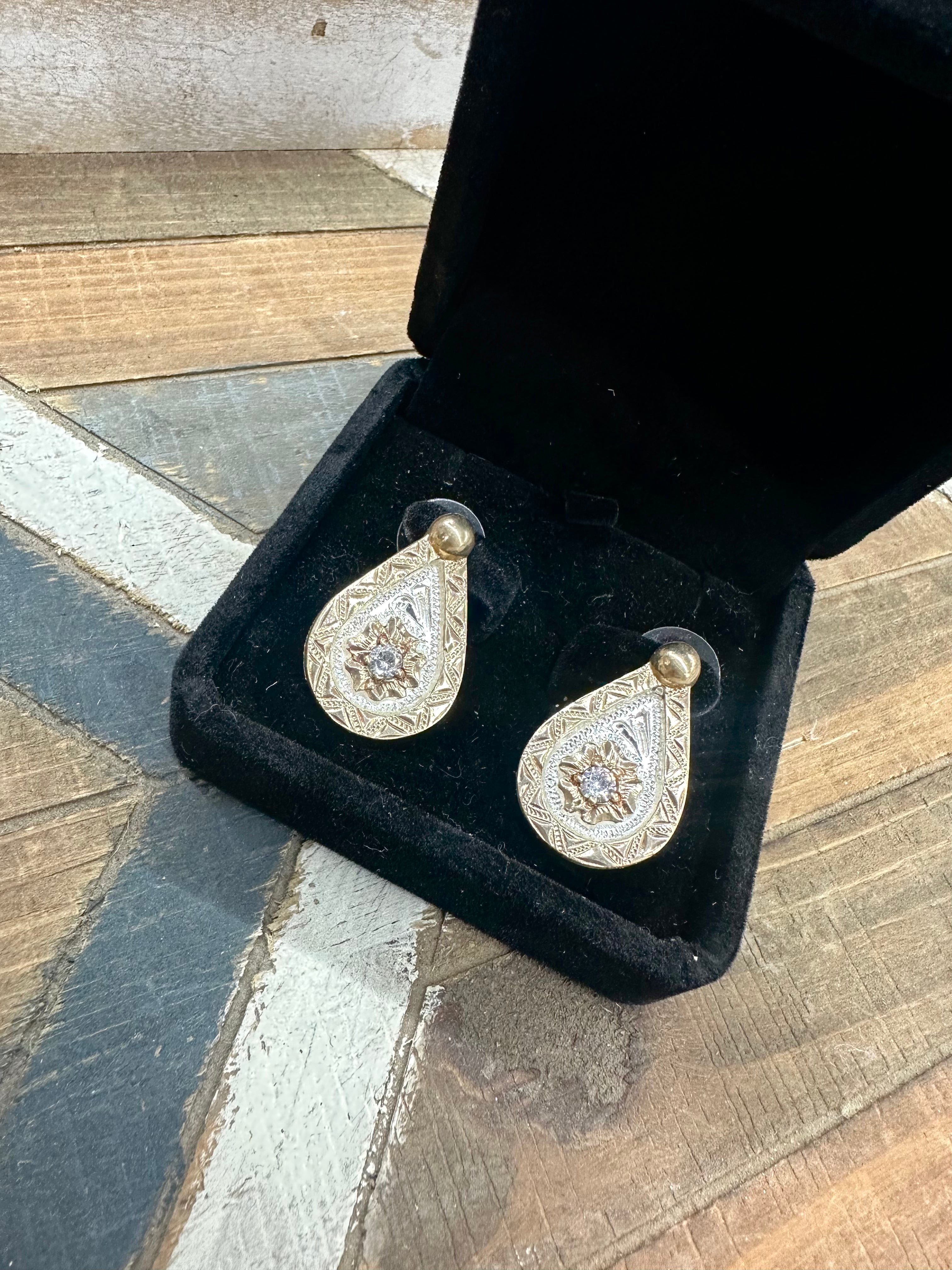 Expertly crafted with a combination of silver and brass, these elegant teardrop earrings feature intricate floral designs from Hannah's Silver collection. Perfect for adding a touch of sophistication to any outfit.