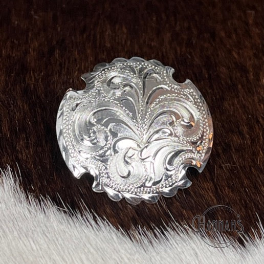 This beautiful slide is from Hansen silver. Known for their beauty and quality. It measures 1 1/2" wide, and a beautiful accent for any wild rag. In a Silver finish.